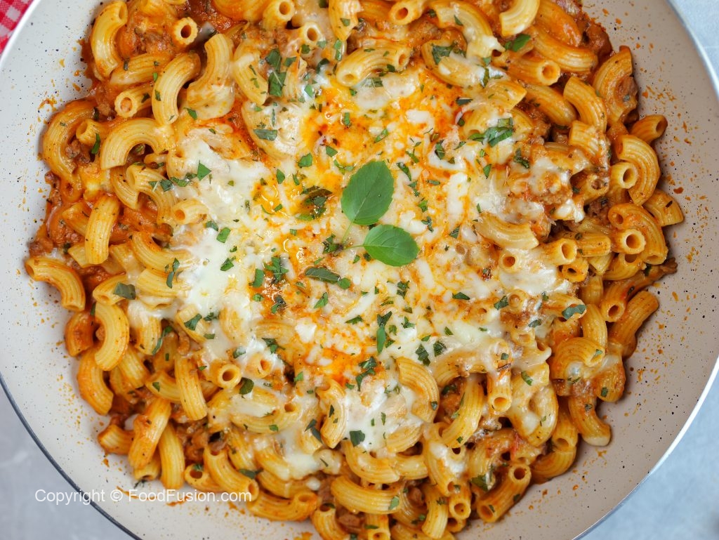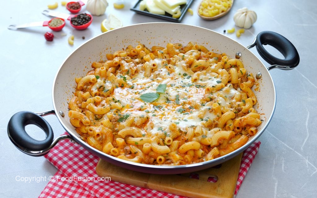 -Add boiled pasta,prepared tomato sauce,mozzarella cheese,cheddar cheese & mix well.