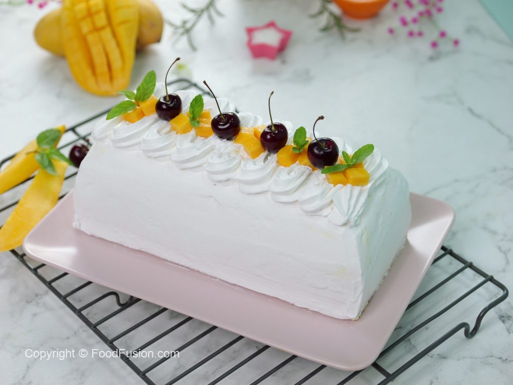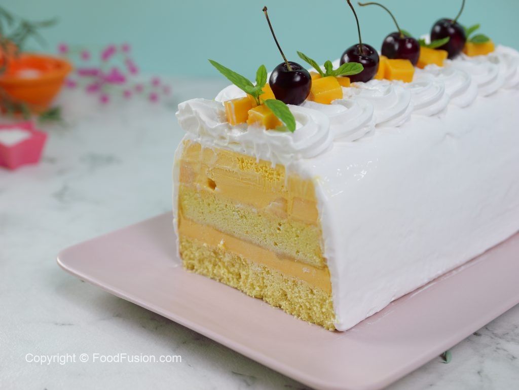 -Place pound cake & spread prepared mango puree on it.