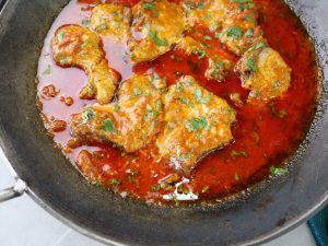 -Add fried fish,mix gently & cook for 4-5 minutes.