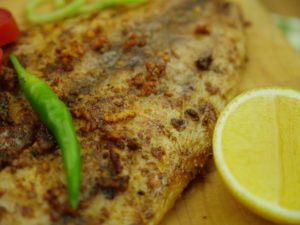 Add marinated fish and cook on low flame until done (3-4 minutes each side).