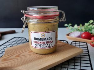 Cut one side of tortilla,add & spread chicken tikka spread,cheese slice,cucumber,tomato, potato fries and drizzle tomato ketchup,fold and grill for a minute & serve!