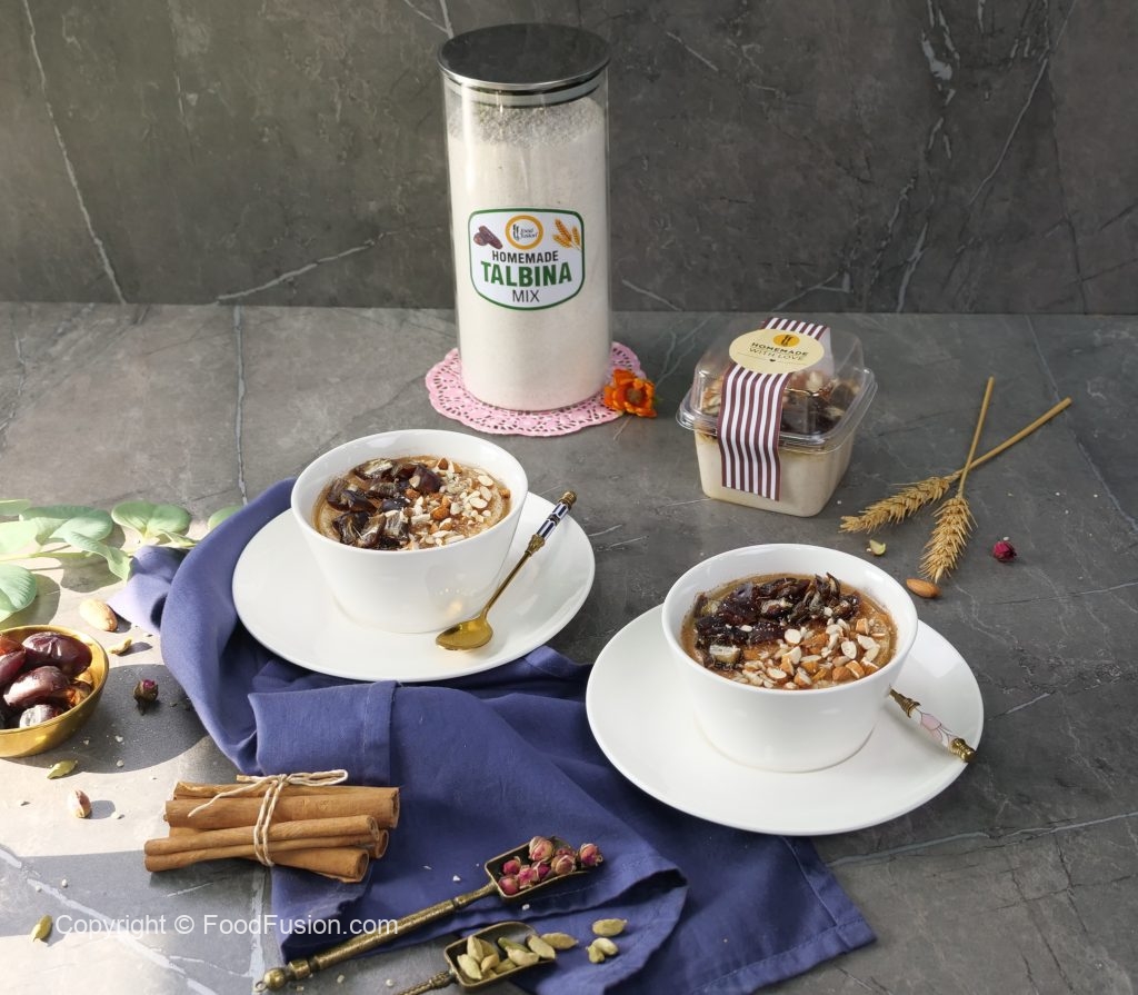 -Dissolve or cook 2 tbs of Homemade Talbina mix in 1 Cup of milk/water.