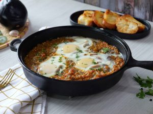 -Cast iron pan mein cooking oil, butter dal kar melt hone dein.