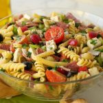 -Add red bell pepper,cucumber,black olives,green olives,cherry tomatoes,capsicum,beef pepperoni, onion,cottage cheese,fresh parsley and toss well.
