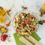 -Add Mario’s penne macaroni,fusilli macaroni,shell macaroni,mix well & boil for 5-7 minutes then strain & rinse with tap water & set aside.