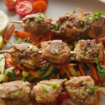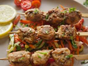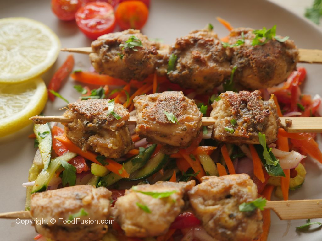 Kasturi chicken skewers ko salad ka saath serve karein.