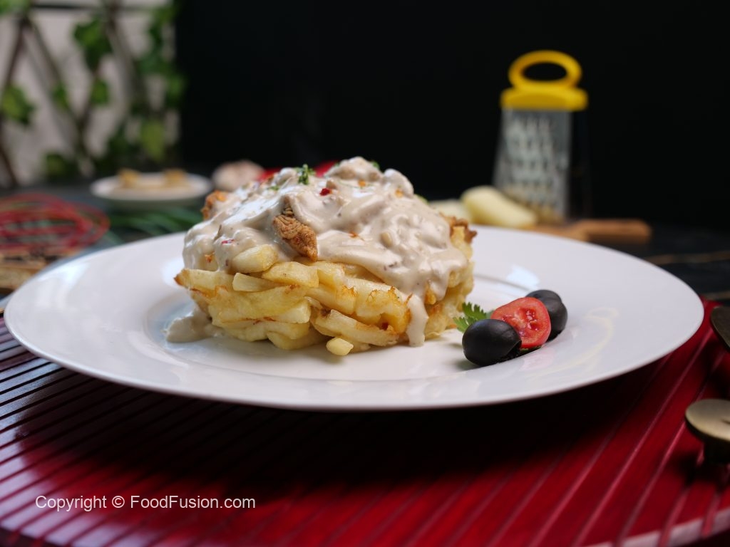 These Loaded Alfredo Fries are a great dish to nibble on with friends or family over a weekend night. The crunchy fries, creamy sauce, and a layer of Olper’s Cheese will leave you wanting more! #OlpersCheese #1Glass1Slice #ToastKaNayaFriend #BreakfastKiJaan #FoodFusion #HappyCookingToYou #DigitalAmmi