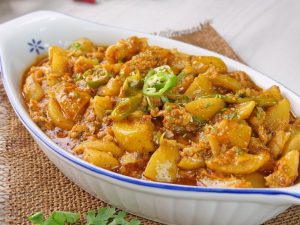 -Add potatoes & blanch for 5-6 minutes,strain & set aside.