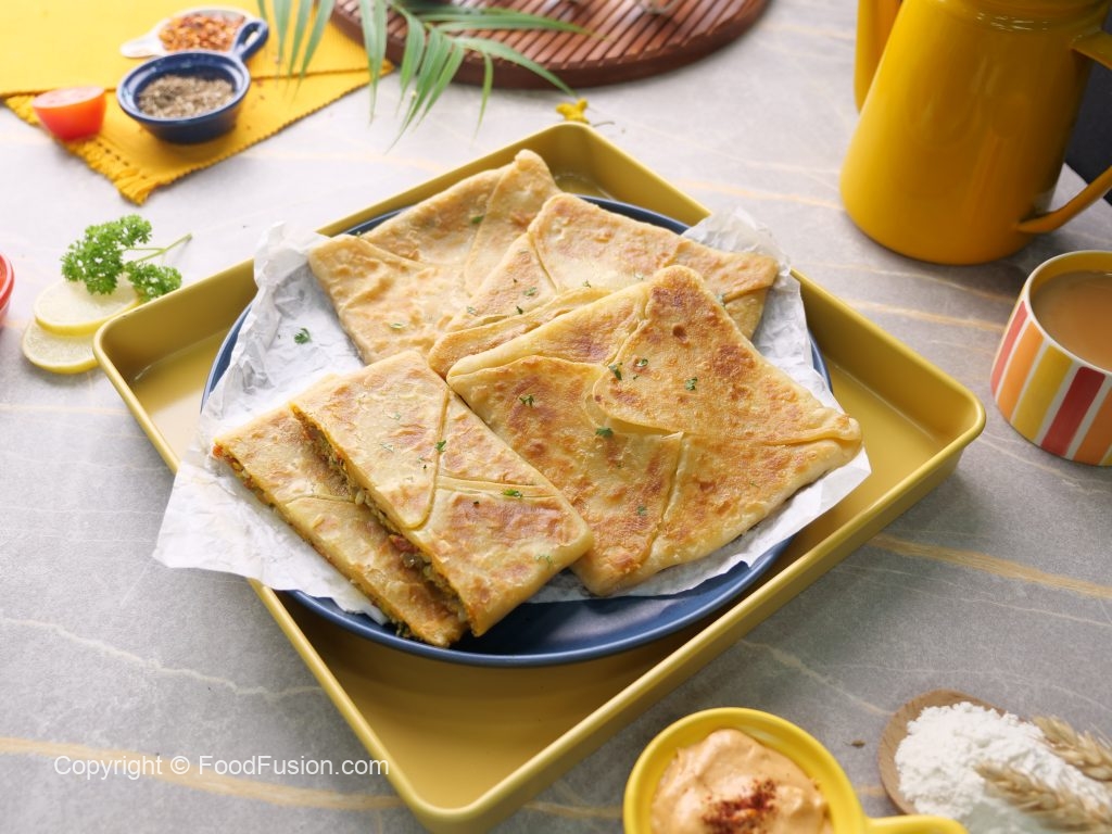 -Tawa garam karein aur makhan sa grease ker lein,lifafa paratha rakh dein aur darmiyani ancch per dono sides sa golden ho janay tak fry ker lein (makes 4) & serve karein!