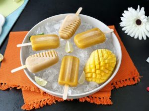 In popsicle moulds,pour blended mixture and freeze overnight.