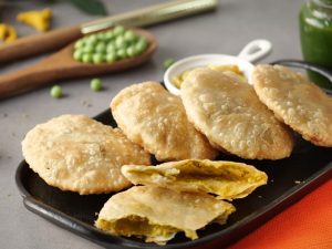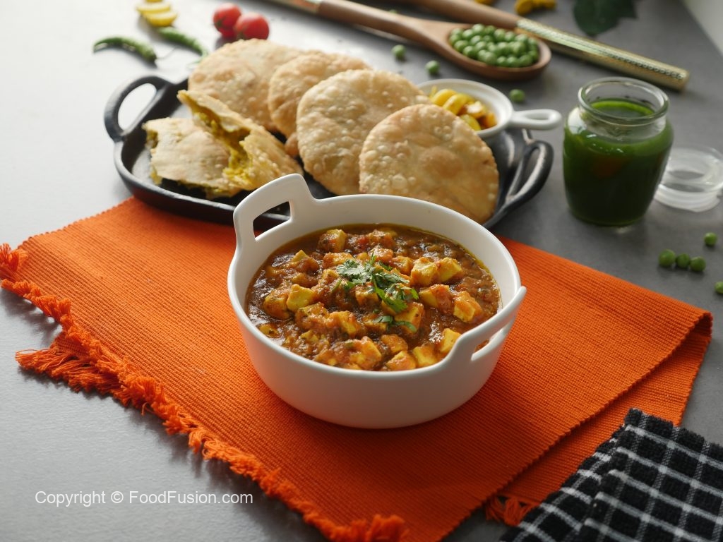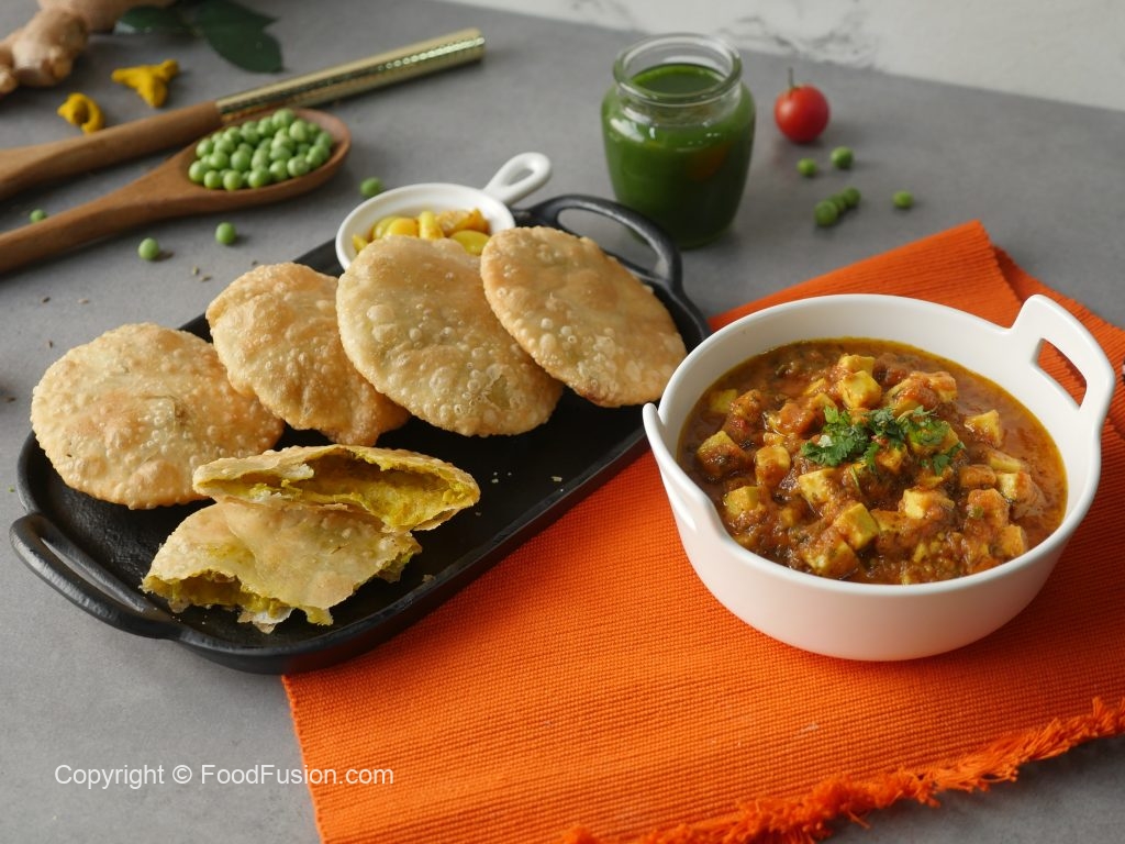 Matar kachori ko paneer tarkari ka saath serve karein!