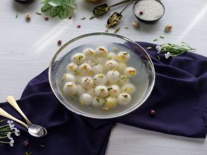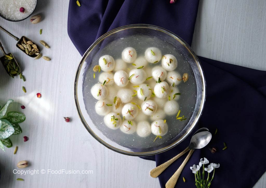 -Halki ancch per sheeray mein mini rasgulla balls dal dein aur darmiyani ancch per 3-4 minutes (without stirring) paka lein aur dhak ker 8-10 minutes ya size double ho janay tak paka lein.