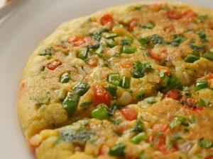 Shimla mirch,tamatar,pyaz aur hara dhania dal ker gently press karein aur flip ker lein.