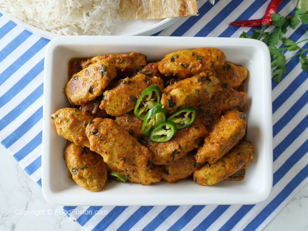 -Add fried muthi kababs,cover & cook on low flame for 6-8 minutes then turn sides gently.