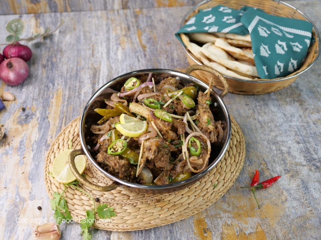 -Ab mutton ko karahi ki sides per ker dein aur center mein cooking oil,adrak lehsan paste aur hari mirch dal ker ache tarhan mix karein aur ek minute kliya sauté ker lein.