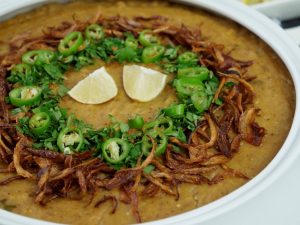 Garnish with fried onion,fresh coriander,green chillies,lemon,chaat masala & serve!