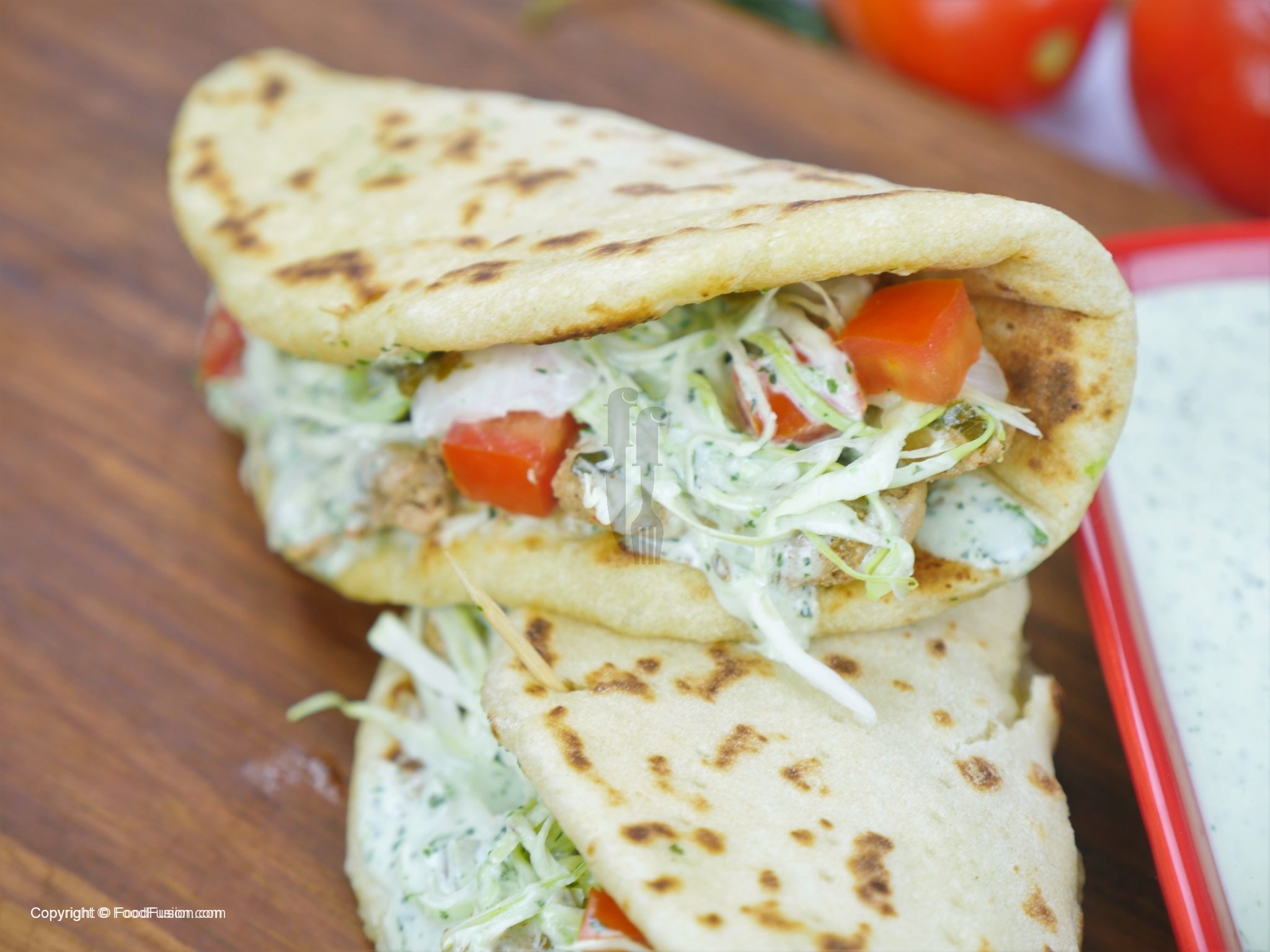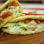 Naan per chicken,pyaz,tamatar,band gobhi aur chutney dal dein.