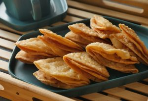 Add and spread flour & ghee paste and roll the dough then cut into small pieces.
