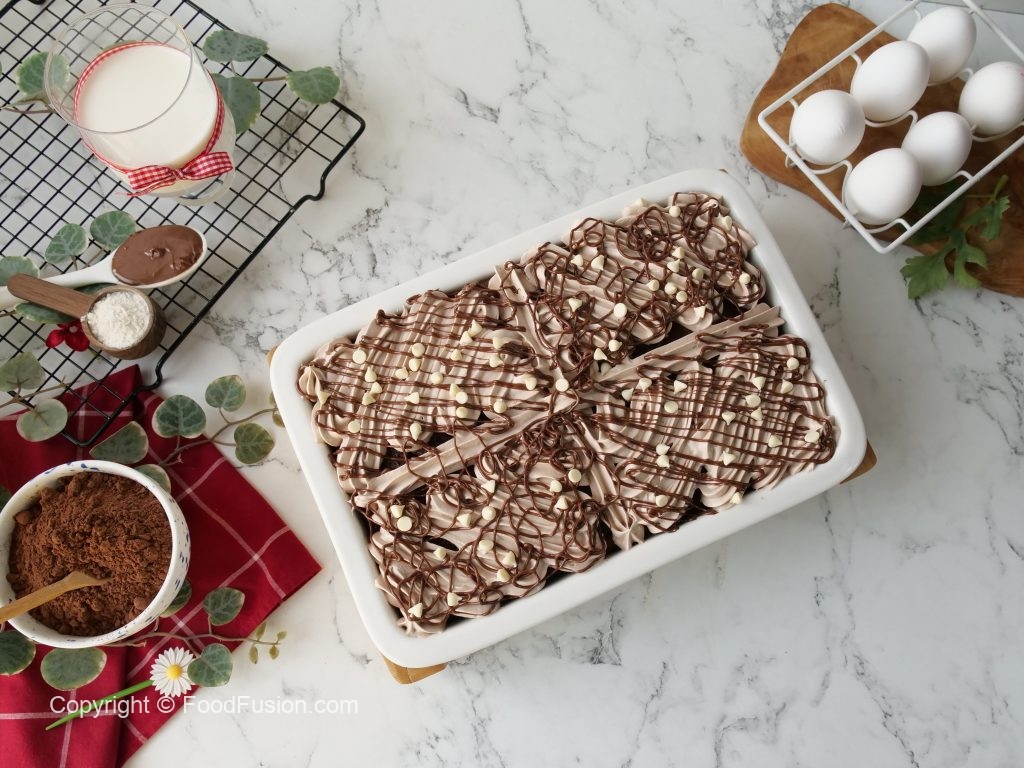 -Drizzle melted Nutella & add white chocolate chips,cut into desired pieces & serve!