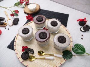 -Pipe out prepared Oreo cream,garnish with prepared ganache & Oreo biscuits.