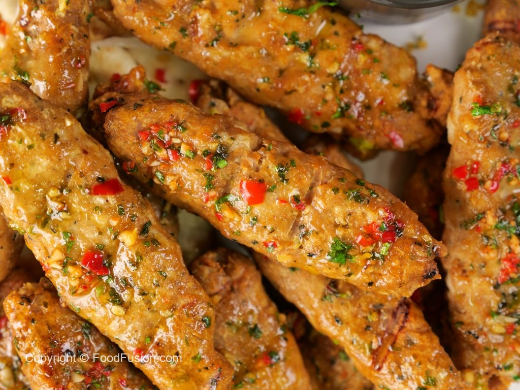 -Apply prepared spicy butter on both sides of seekh kababs & continue cooking on grill+combination for 5-6 minutes or until kababs are done (makes 12-14).