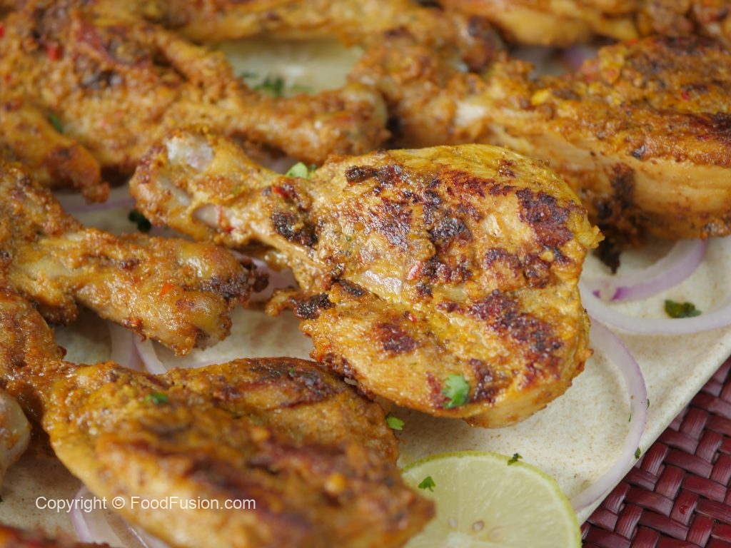 -In a frying pan,add cooking oil & cook marinated chicken on medium flame from all sides until brown (3-4 minutes),cover & cook on low flame until done (10-12 minutes).