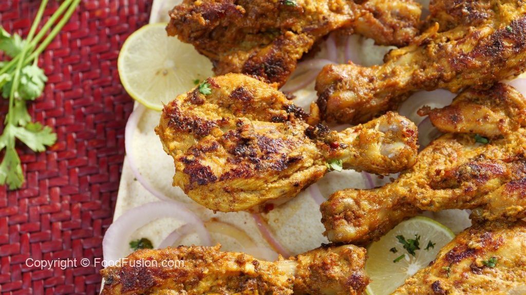 -Chicken drumsticks mein vertically deep cut laga lein aur butterfly ki tarhan open ker lein & side per rakh dein.