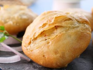 -In a wok,heat cooking & fry kachori on medium flame until golden & crispy (makes 12-13).