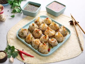 -Drizzle dipping sauce,garlic chilli oil,sesame seeds & serve!