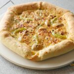Mozzarella cheese,cooked chicken,mushrooms,pyaz,lal mirch crushed,cheddar cheese,shimla mirch aur mozzarella cheese dal ker lal mirch crushed sprinkle ker lein (makes 2 large pizza).