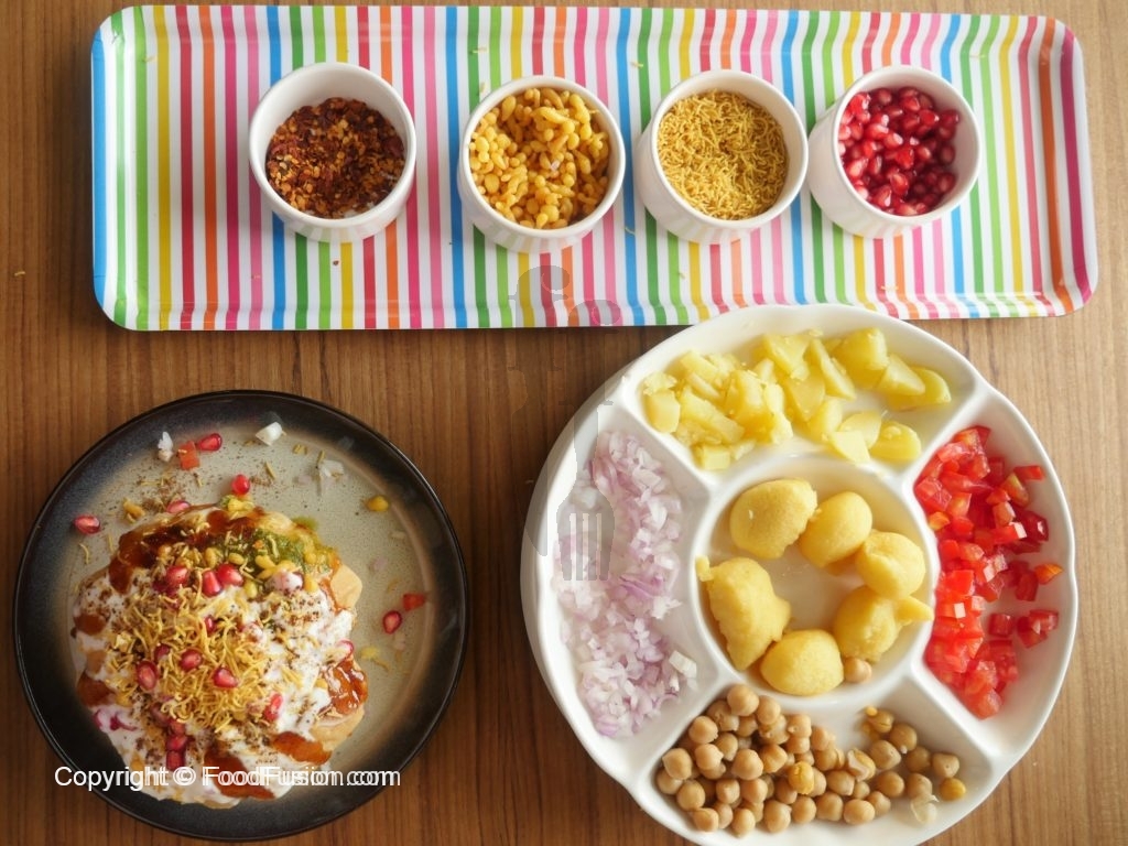 Kachori mein hole karein,chanay,moon daal phulkiyan,aloo,tamatar,pyaz,dahi,meethi chutney,green chutney,lal mirch crushed,boondiyan,sev/papri,anar,dahi,chaat masala aur sev/papri dal ker serve karein.