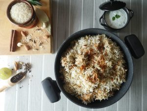 - Chawal (Rice) 750g (soaked & boiled with salt until 3/4th done)