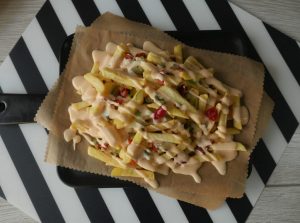 Potato fries,burger,nuggets,chicken hot shots,favoutire snacks dip sauce ka saath serve karein or as a dip sauce bhi serve ker saktay han!