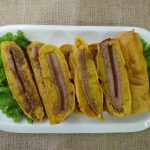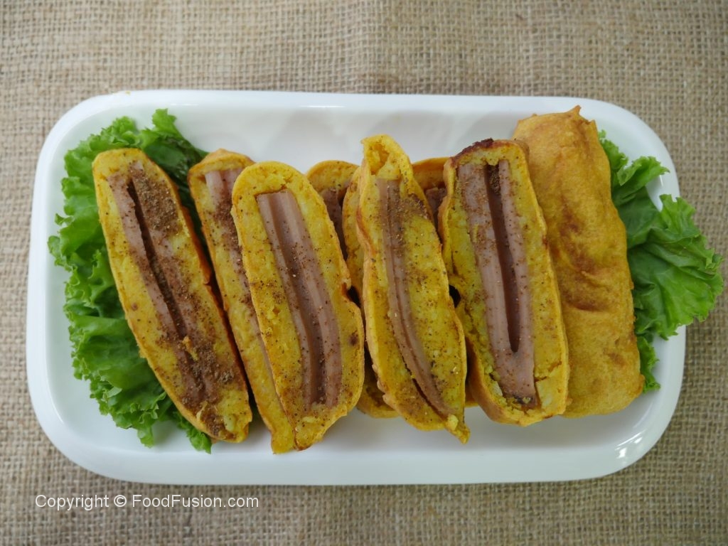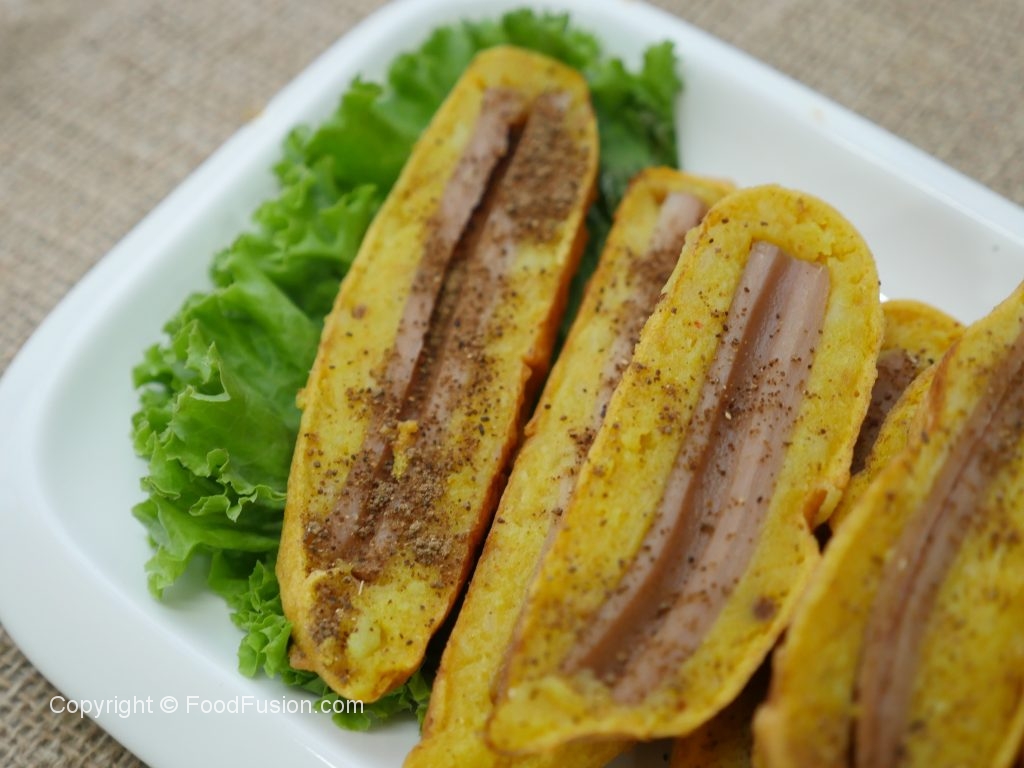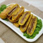 Cut lotus root from the center into two halves and take potato mixture and coat properly on lotus roots & set aside.
