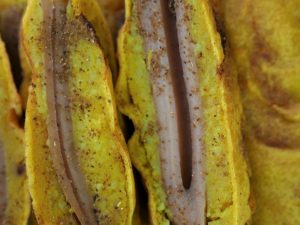 Beeh ko bech mein sa do hisson mein cut ker lein aur potato mixture laga ker ache tarhan coat ker lein & side per rakh dein