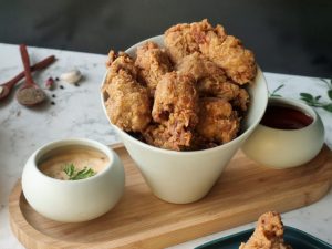 -Ek bowl mein dhania powder,chaat masala,pink salt,lal mirch powder aur haldi powder dal kar mix ker lein & side per rakh dein.