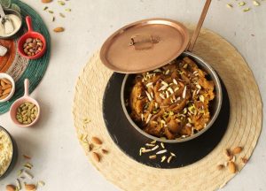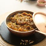 Add pistachios, raisins, almonds, mix well & cook for 1-2 minutes then set aside.