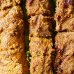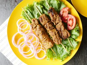 -Give a charcoal some for 3 minutes and insert beef cubes onto the skewers.