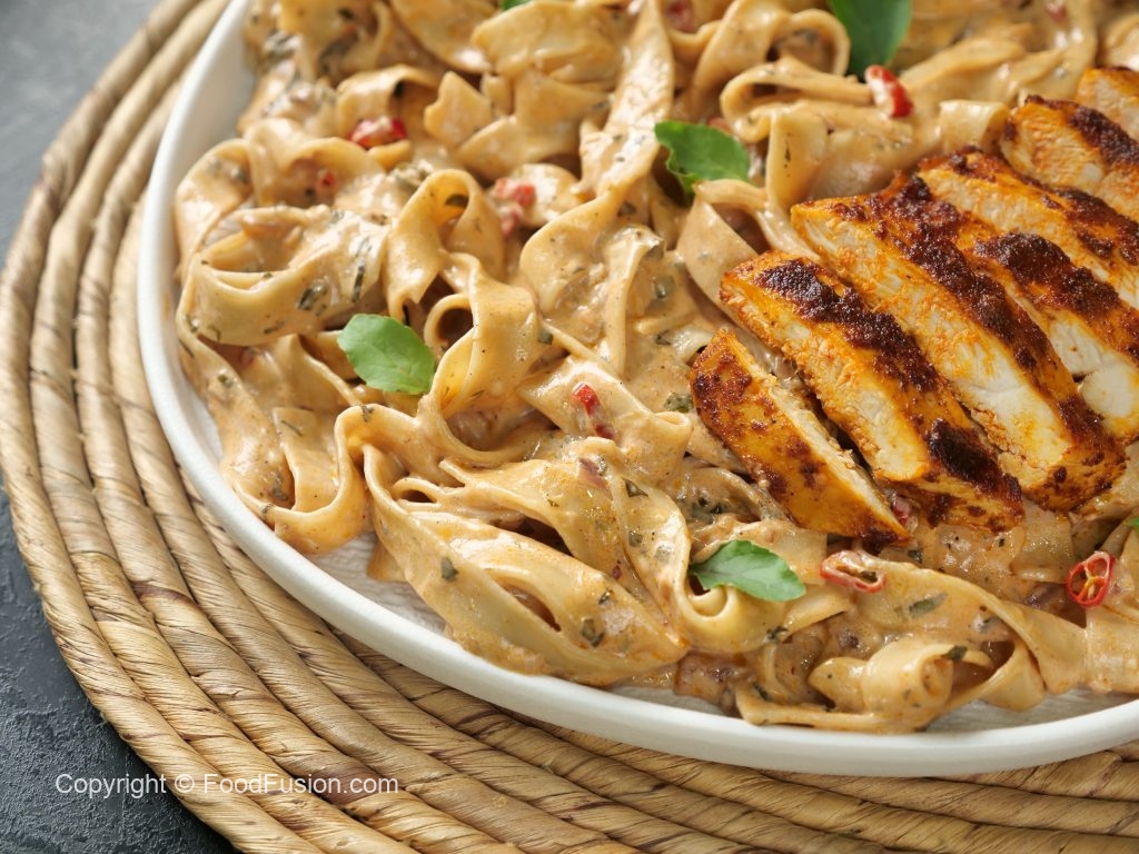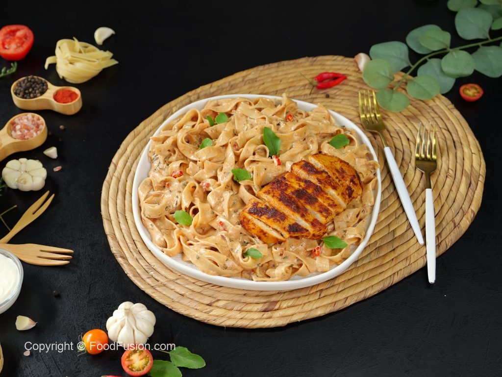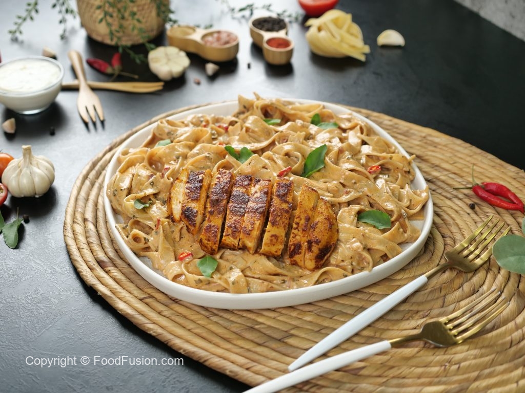 Spicy Fettuccine: A perfect blend of tender pasta and a sauce that brings the fire. A flavor experience you won’t forget. #happycookingtoyou #foodfusion #araywahh