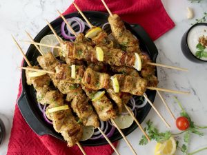 In bowl,add yogurt,cream,bihari kabab masala,ginger garlic paste and whisk well.