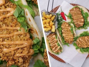 Chicken fillets dal ker ache tarhan mix karein aur 30 minutes kliya marinate ker lein.