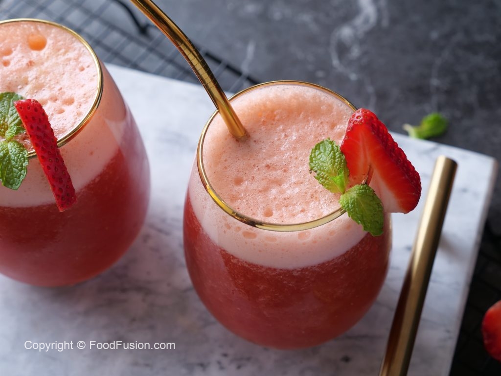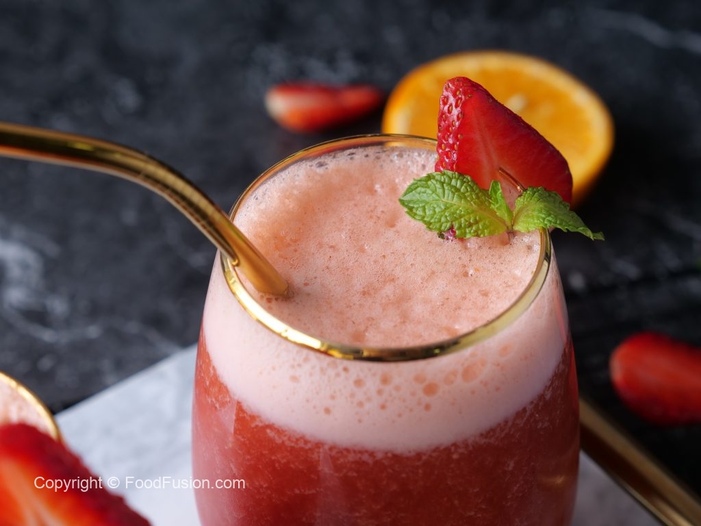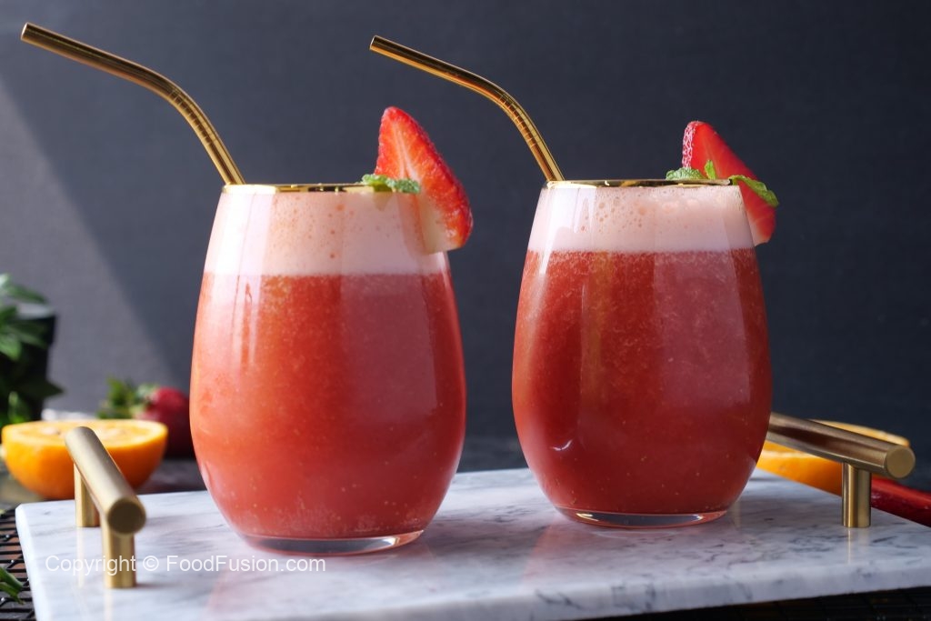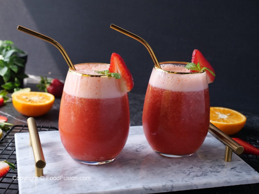Quick easy and Refreshing Strawberry Orange Juice just like you get at restaurants. #HappyCookingToYou #FoodFusion