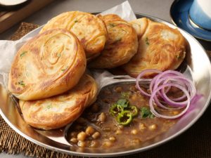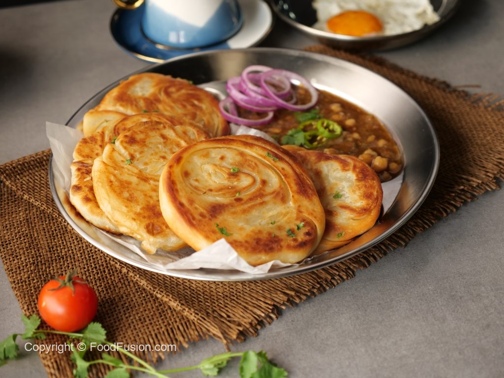 Bun paratha ko chanay ka salan, half fry anda ya chaye ks ath serve karen!