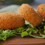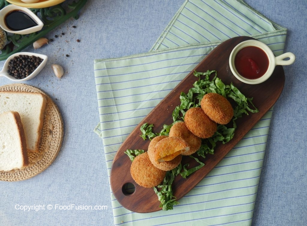 Coat in all-purpose flour then dip into beaten eggs and coat with breadcrumbs then shape into round shape (makes 24-25).