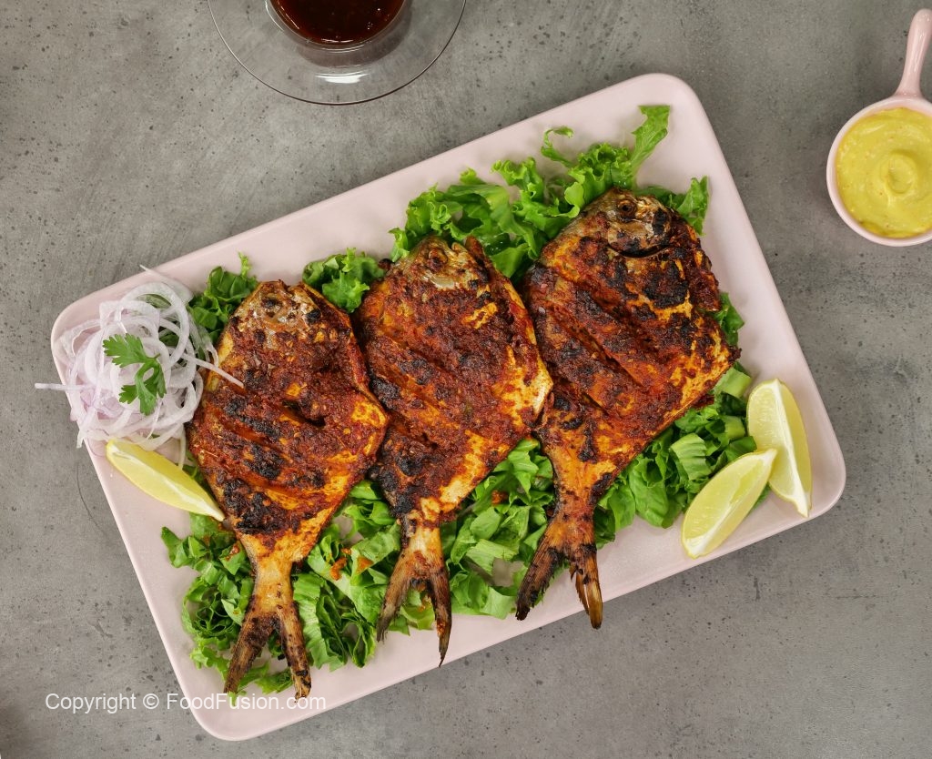 -Remove the fins of pomfret fish & make deep cuts on both sides.