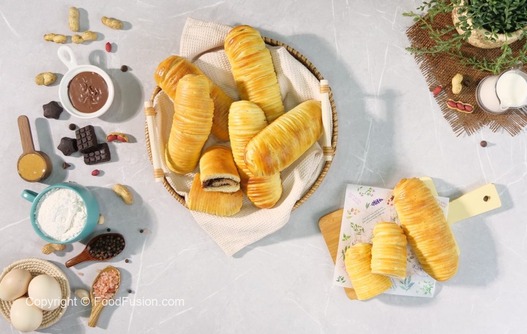 -Spread prepared garlic cheese filling or peanut butter or chocolate spread on the remaining half of the dough then roll out the dough & seal the sides carefully.