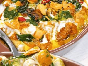-Bowl mein dahi, adrak lehsan paste, hari mirch, dhania powder, kashmiri lal mirch powder, pink namak, zeera powder, lal mirch powder, garam masala powder, mace powder, jaifil powder, orange food color, lemon juice dal kar whisk karen.