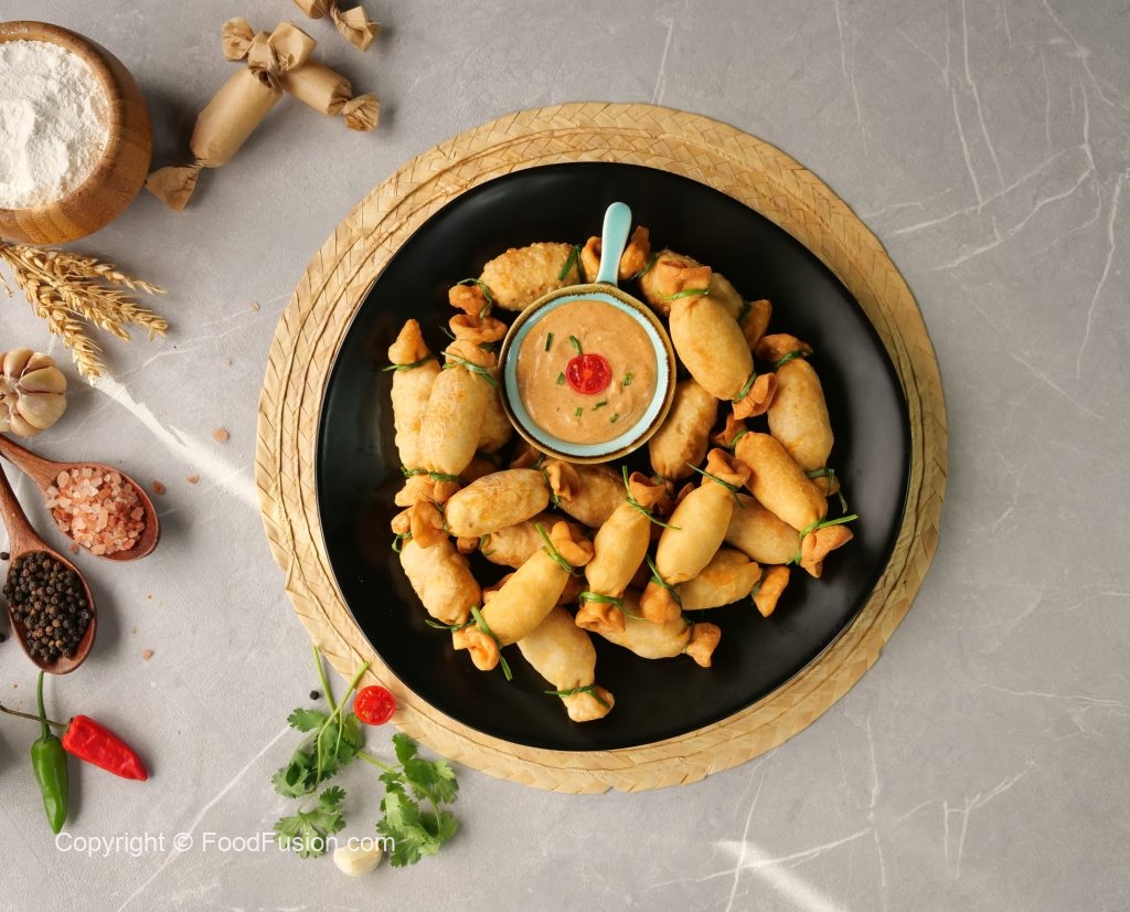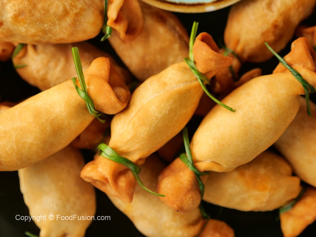 -In a wok,heat cooking oil (150°C) & fry on low flame until golden & crispy (makes 15-16).