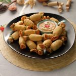 -Cut 4-inch round dough with the help of a cutter,place creamy kabab in the center of each dough,apply water on the edges,roll & twist to make a toffee shape.