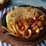 Add & spread butter,place cabbage leaves,fried rice,potato fries,stir-fried vegetable,shashlik sauce & serve!